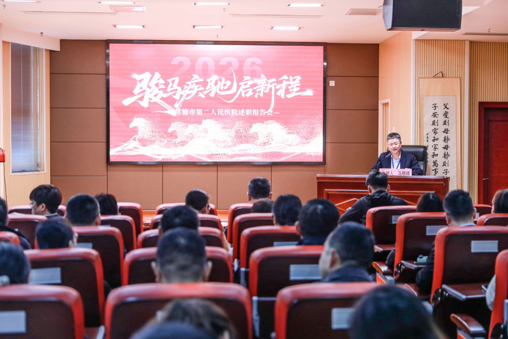 为全面总结2025年管理经验、科学谋划2026年发展路径,1月14日至15日,常德市第二人民医院召开中层干部述职会议。医院领导班子、全体中层干部一百余人齐聚一堂,通过对2025年度“多维度数据对比、晒成绩、查短板、谋新篇”的形式,为冲刺三甲医院创建核心目标凝聚共识、蓄力赋能。会议由党委书记马明祥主持。